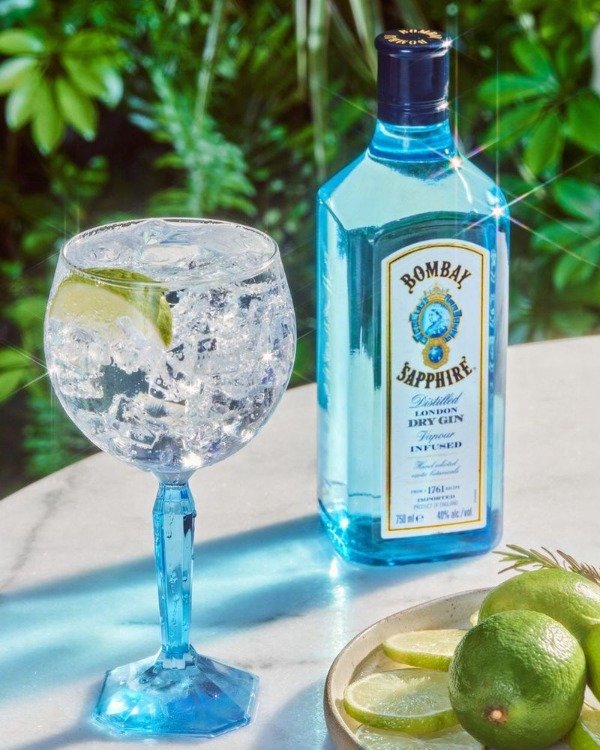 Azul icónico y perfil cristalino: Bombay Sapphire London Dry es un gin juniper‑forward con cítricos brillantes y un corazón especiado elegante.