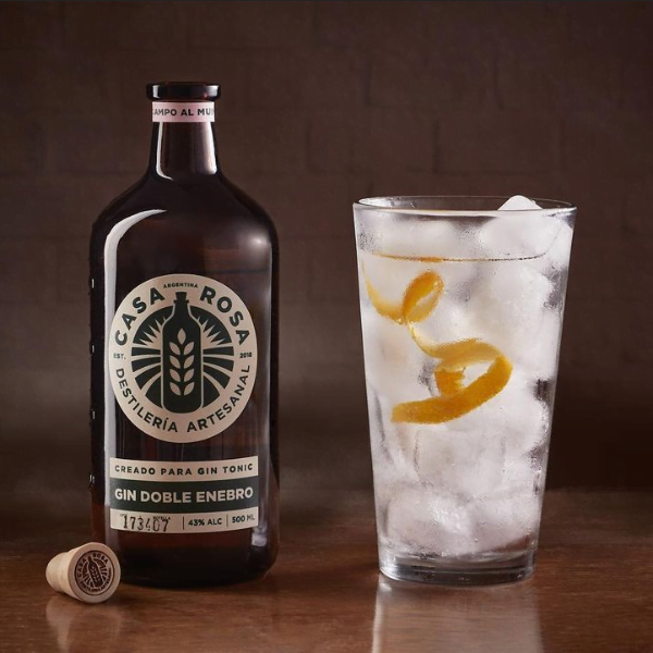 Juniper-forward, fresco y bien argentino: Casa Rosa Doble Enebro combina un impulso limpio de pino del enebro con un fondo cítrico de cedrón y pomelo.