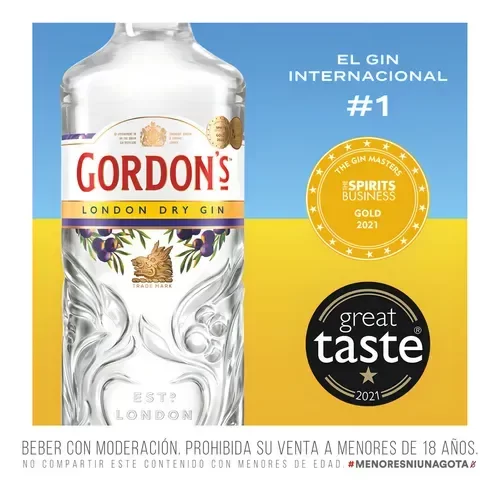 Clásico entre clásicos desde 1769: Gordon’s London Dry es un gin nítido, juniper-forward y cítrico, creado para un G&T crujiente y coctelería limpia.