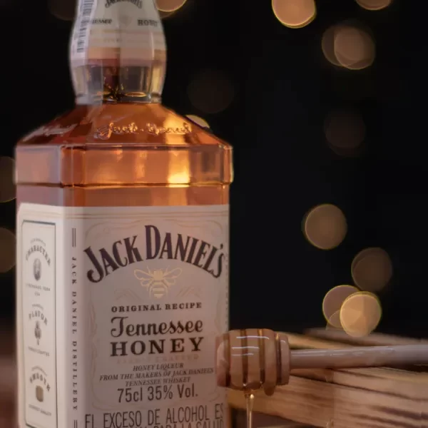 Tennessee Honey Liqueur elaborado al 35% ABV (70 proof): un blend de Jack Daniel’s Old No. 7 con un licor de miel propio de la casa. Perfila miel real, vainilla y caramelo, con ecos de nuez/tostados y un guiño floral. La base de Tennessee Whiskey aporta el carácter de barrica nueva y el pulido del charcoal mellowing, dando una textura suave y redonda. En boca entra dulce-seco, mantiene equilibrio y deja un final medio con recuerdo de miel y roble amable. Nació para ser versátil: on the rocks, highballs (limonada o soda) y coctelería simple donde brilla su perfil goloso pero no empalagoso.