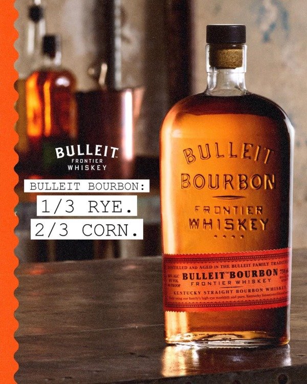 La sutileza y complejidad de Bulleit Bourbon provienen de su mezcla única de centeno, maíz y malta de cebada, junto con cepas especiales de levadura y agua pura de Kentucky filtrada con piedra caliza.