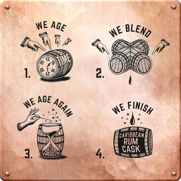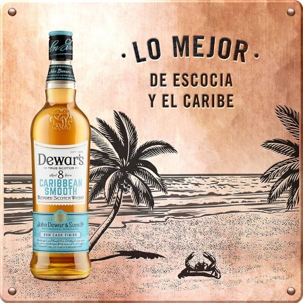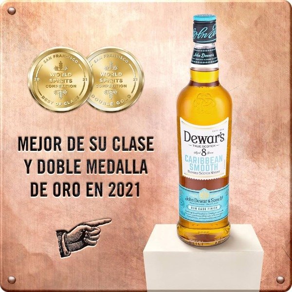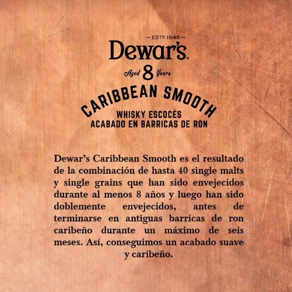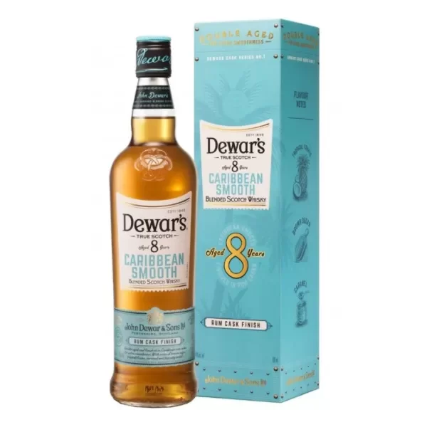 Dewar’s Caribbean Smooth es un blended Scotch que combina hasta 40 whiskies de malta y grano, todos madurados por al menos 8 años. Luego, se somete a un proceso de "double‑ageing": primeramente se mezcla y envejece nuevamente, y finalmente recibe un acabado especial de aproximadamente 6 meses en barricas que antes contuvieron ron caribeño.