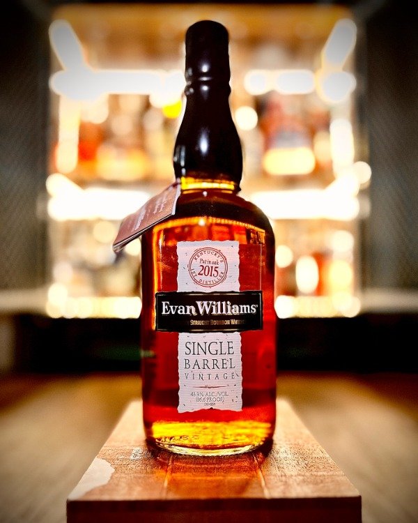 Clásico de Heaven Hill con sello vintage: Evan Williams Single Barrel es un Kentucky Straight Bourbon single barrel (cada botella proviene de una única barrica) embotellado a 86.6 proof (43,3% ABV).