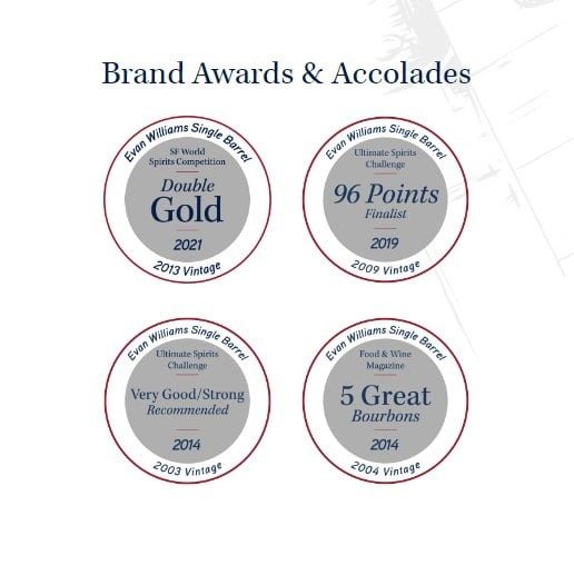 - Referencia emblema de la casa Evan Williams; cinco veces reconocido como “Whiskey of the Year” en publicaciones especializadas.