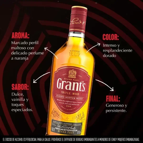 - Cócteles sugeridos: Grant’s & Cola, Scotch & Soda cítrico, Whisky Highball, Godfather ligero.