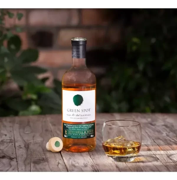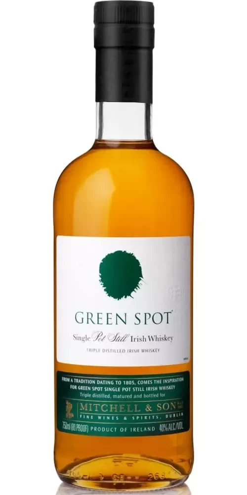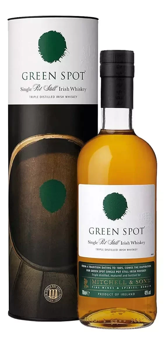 Green Spot es un single pot still Irish whiskey elaborado exclusivamente para Mitchell & Son, un histórico comerciante de vinos y whiskies fundado en Dublín en 1805. Originalmente, formaba parte de una gama identificada por colores en los barriles (“spots”) — Green Spot fue el único que se mantuvo en producción constante desde principios del siglo XX.