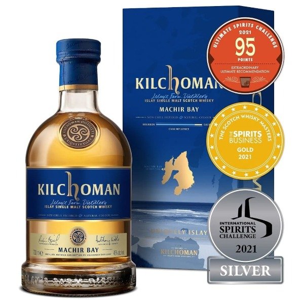 Islay en estado puro: Kilchoman Machir Bay es un single malt peatado y marítimo con un equilibrio delicioso entre cítricos, vainilla y ahumado costero.