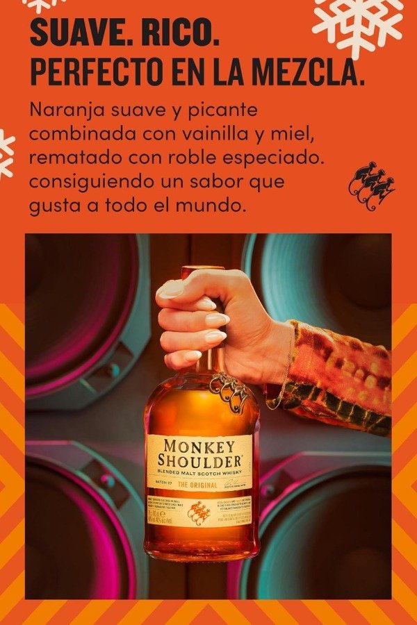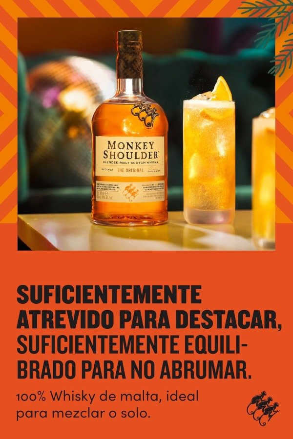 El nombre “Monkey Shoulder” hace referencia a una antigua lesión que sufrían los maltmen al remover cebada a mano—una forma de reconocer la herencia artesanal detrás del whisky.