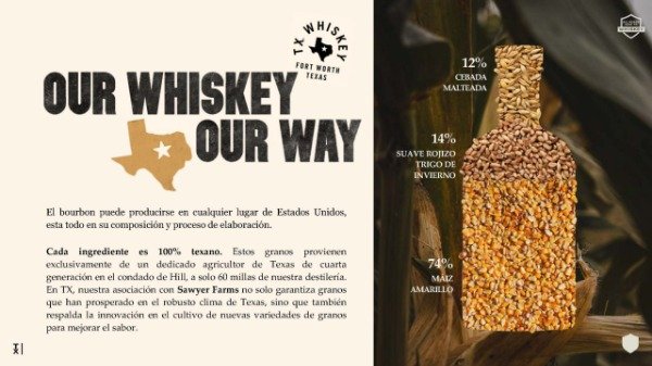 Su mezcla está compuesta por maíz amarillo número 2, trigo rojo blando y cebada malteada, todos cultivados en Texas por una cuarta generación de agricultores.